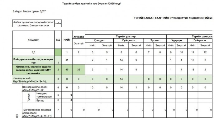 - Шилэн дансны хөтлөлт, хэрэгжилт, аудитын тайлан, зөвлөмжийн дагуу авч хэрэгжүүлсэн арга хэмжээний мэдээлэл
