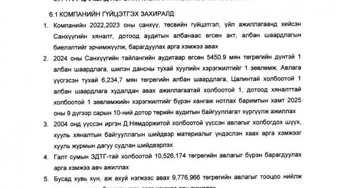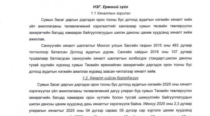 ТӨСВИЙН ТӨВЛӨРҮҮЛЭН ЗАХИРАГЧИЙН БАГЦАД ХАМААРАХ БАЙГУУЛЛАГУУДЫН ШИЛЭН ДАНСНЫ МЭДЭЭЛЭЛД ХИЙСЭН ХЯНАЛТ...