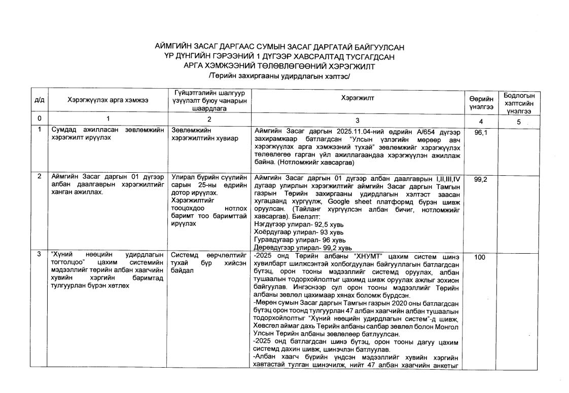 - Шилэн дансны хөтлөлт, хэрэгжилт, аудитын тайлан, зөвлөмжийн дагуу авч хэрэгжүүлсэн арга хэмжээний мэдээлэл